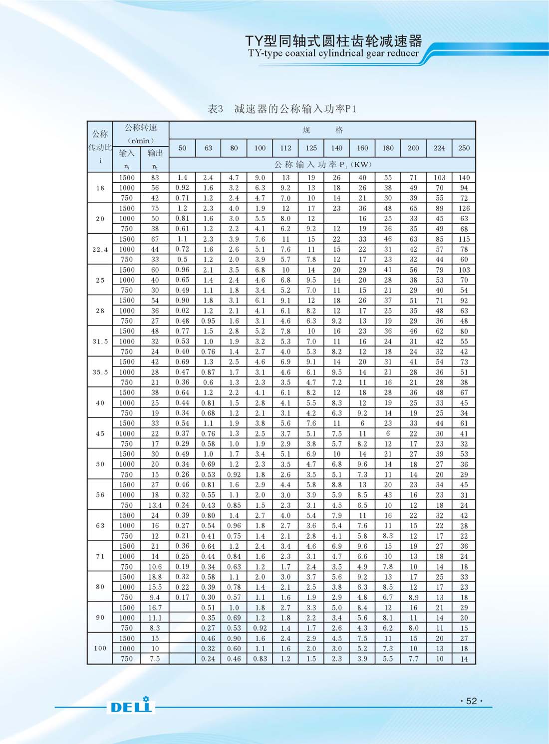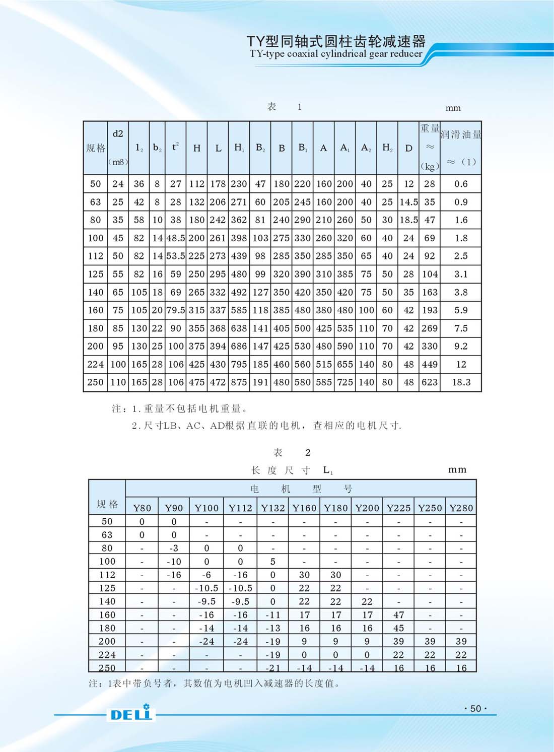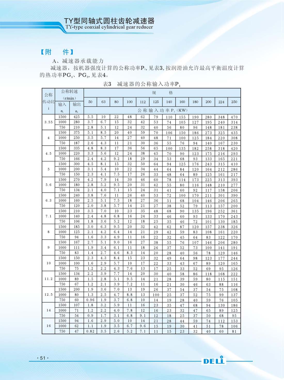 TY系列同軸式硬齒面齒輪減速器是理想的動力傳送裝置,它廣泛用于冶金、礦山、化工、紡織、儀器、能源、建材等行業(yè)。減速器的齒輪圓周速度不大于20m/s,允許正、反轉(zhuǎn)。使用于水平臥式安裝,前 后傾斜角不大于20。直聯(lián)電機(jī)為Y系列三相異步四級電動機(jī),電機(jī)的安裝型式為B5或B35;工作環(huán)境溫度為0攝適度-40攝適度。 減速器的型號TY50/TY63/TY80/TY100/TY112/TY125/TY140/TY160/ TY180/TY200/TY224/TY250
