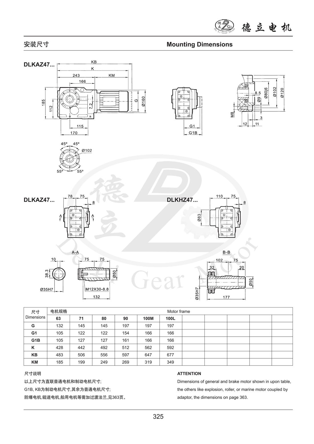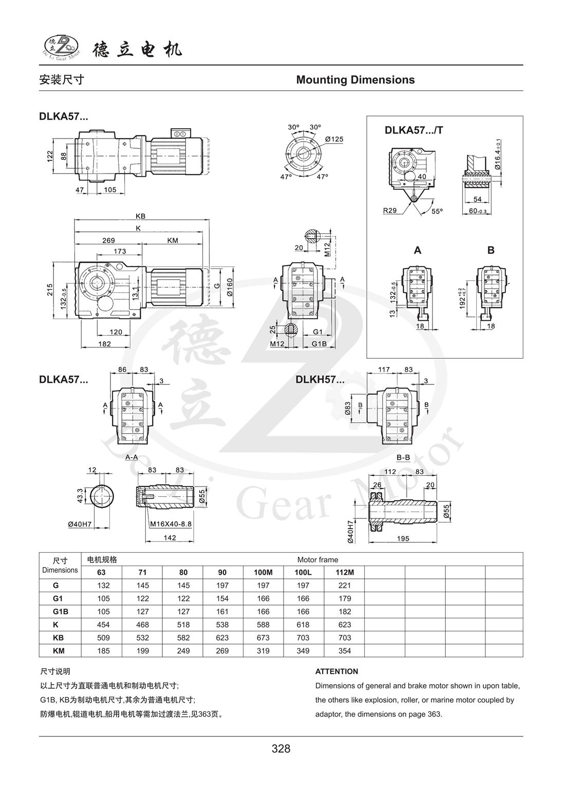 K系列斜齒輪錐齒輪減速電機的輸出方式主要有空心軸輸出或?qū)嵭妮S輸出這兩種,平均效率為94%,使用該產(chǎn)品注意只能在-40℃-50℃的溫度下使用,否則會影響正常使用,還需要注意海拔高度不能超過1000米,輸入轉(zhuǎn)速不大于是1800轉(zhuǎn)/分,齒輪最高圓周速度不超過22米/秒等等,注意上述使用條件,才能保證我們安全使用。